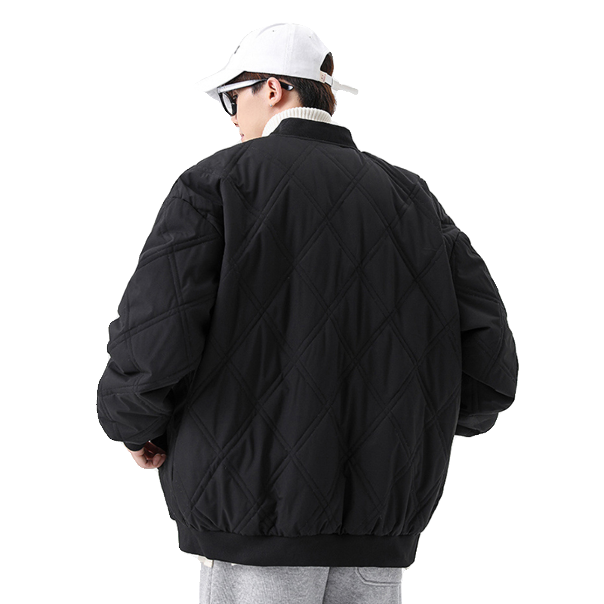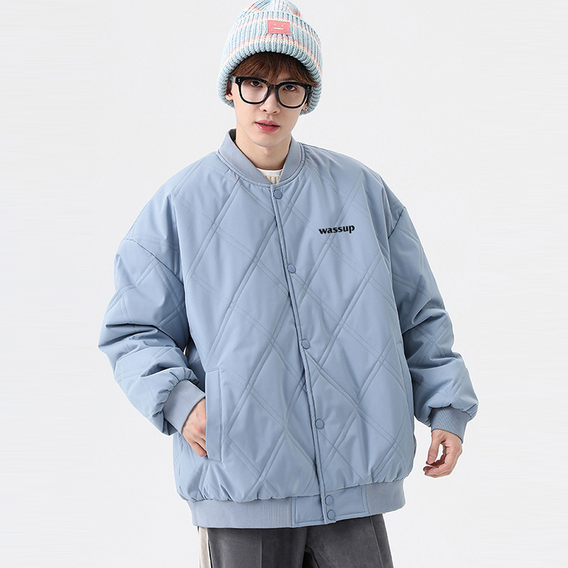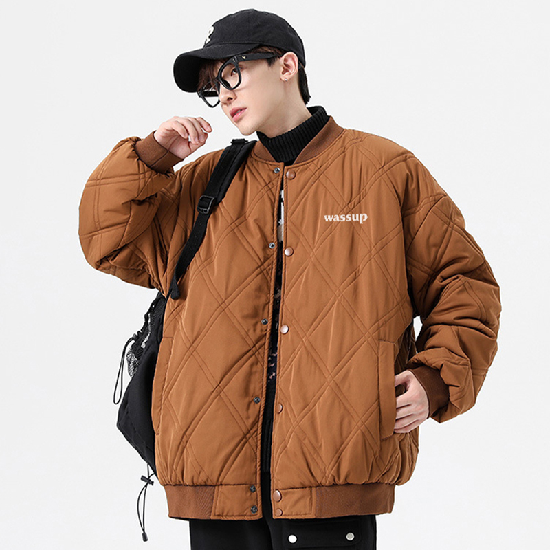 天唐狮冬季新款棉衣男棒球领菱形格运动棉服夹棉外套加厚防寒服外套