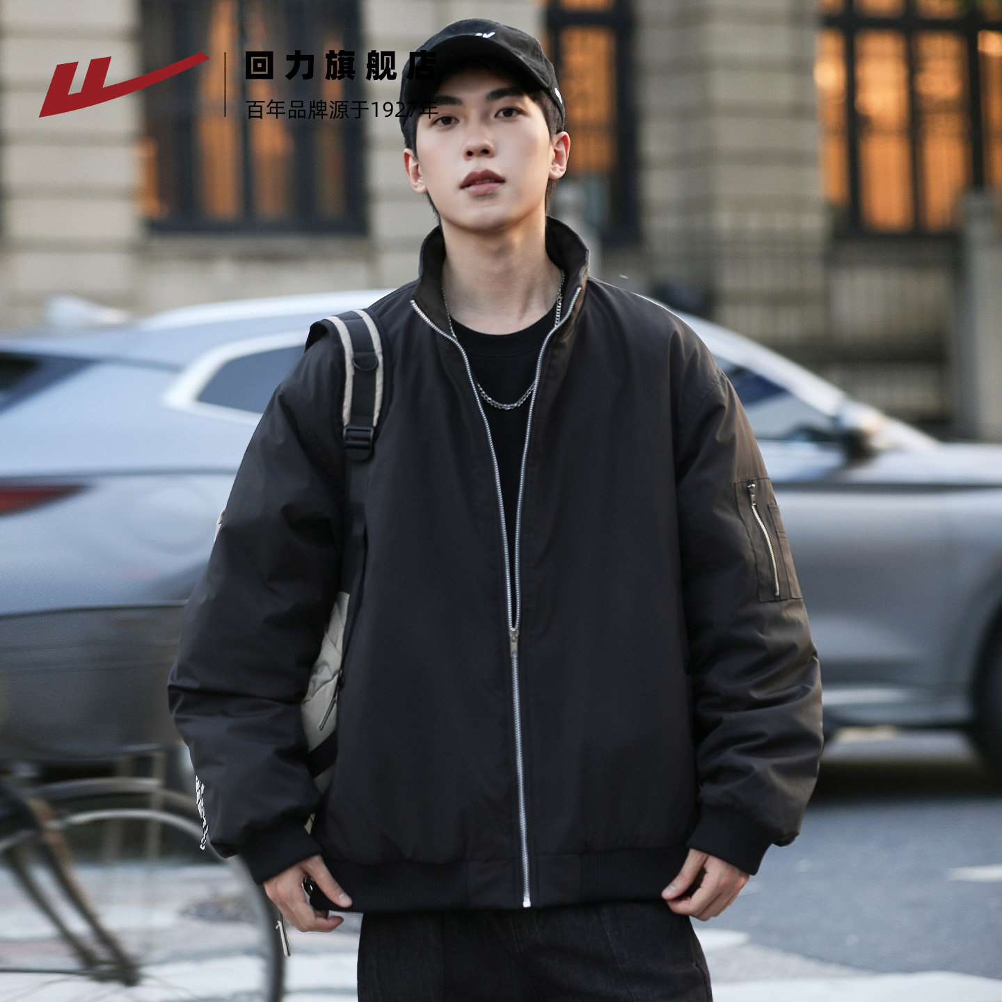 天猫回力棉服男款秋冬休闲男装立领加厚美式工装棒球服飞行员夹克外套