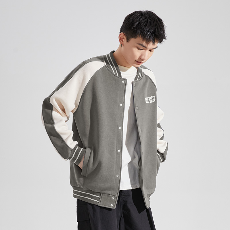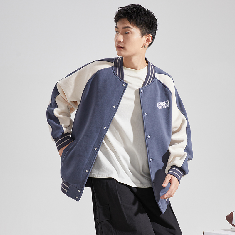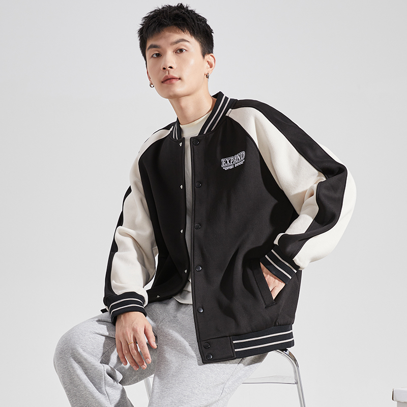 天猫唐狮秋冬季新款棒球服男拼接美式棒球领外套男加绒休闲学院开衫男