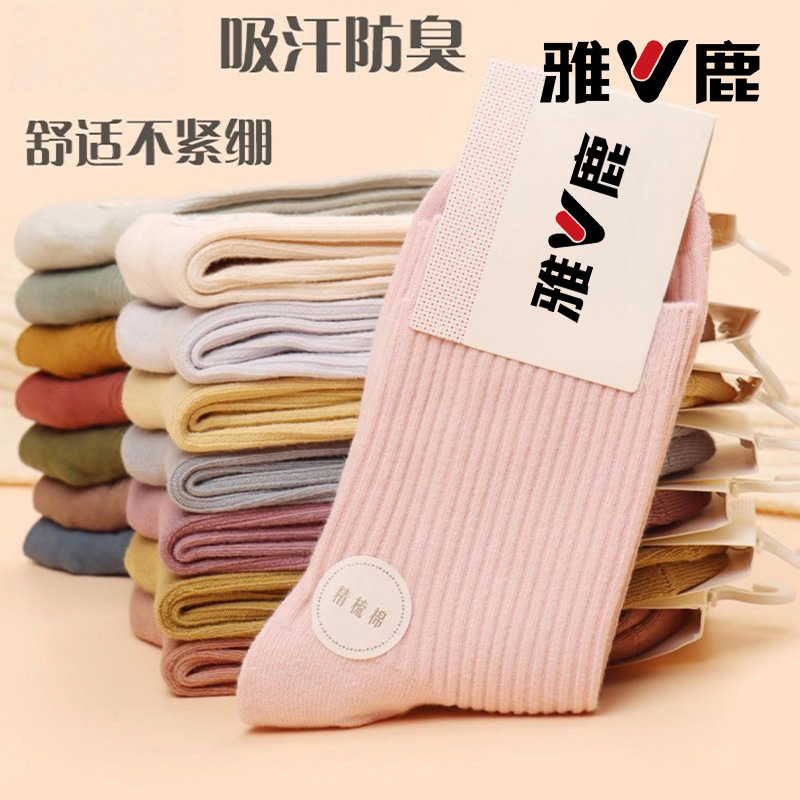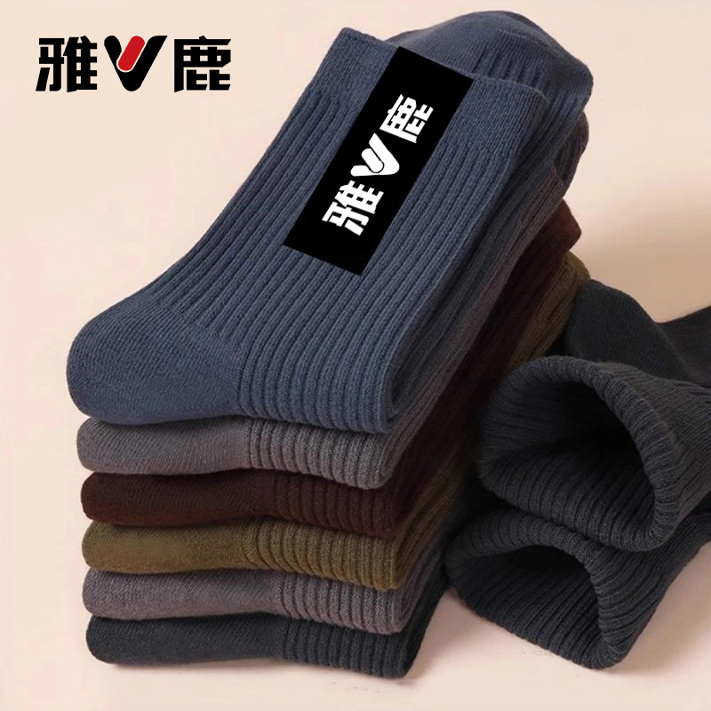 天猫雅鹿袜子男士秋冬款中筒袜吸汗防臭商务袜条纹百搭长筒男袜四季款
