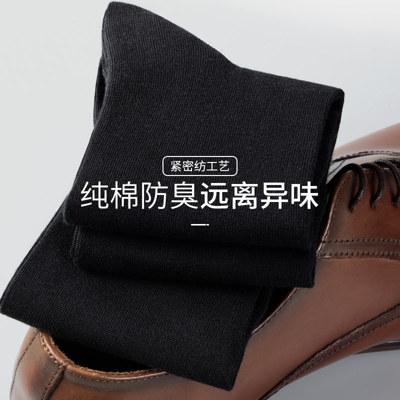 袜子男中筒纯棉秋冬全棉防臭高帮黑色商务男袜日系长筒袜冬季长袜