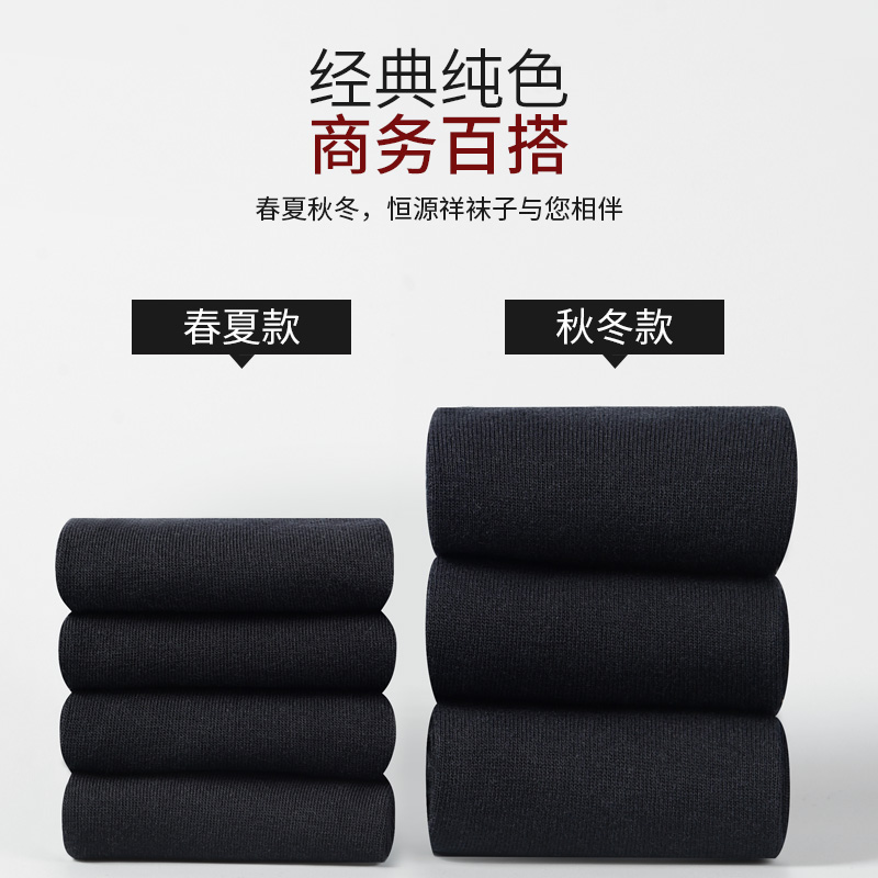 天诸暨袜子男士中筒袜秋冬季纯黑色商务男长袜透气吸汗防臭保暖男袜