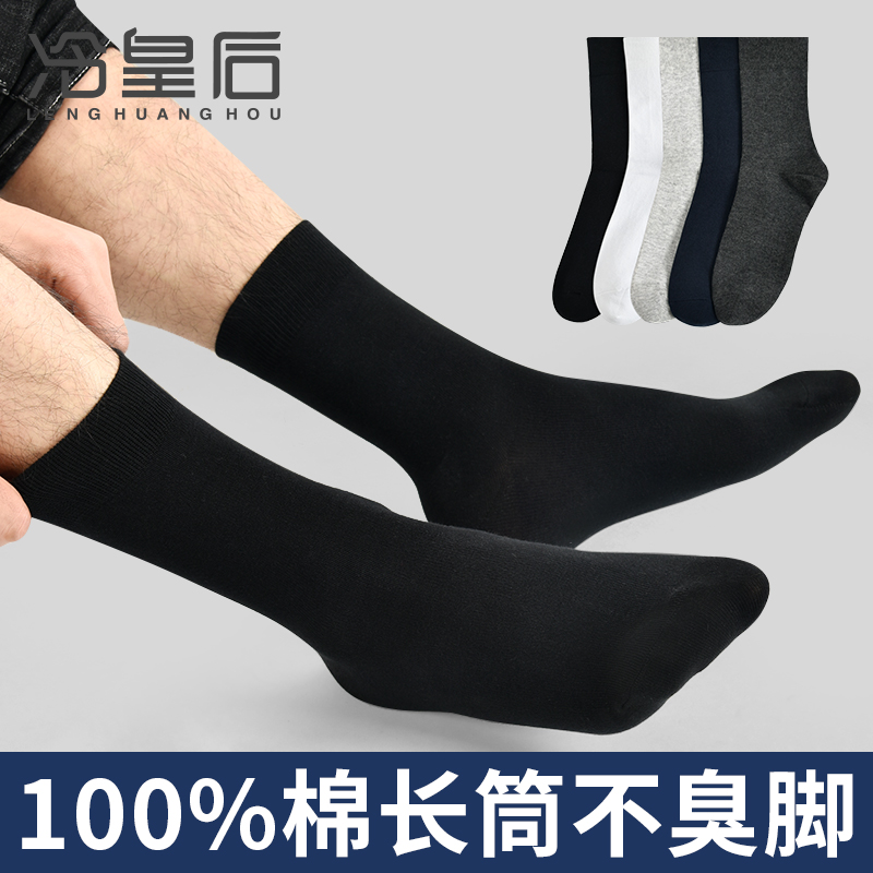 天猫长筒袜男士长袜纯棉防臭春秋中筒男袜全棉商务冬季高筒袜子男黑色