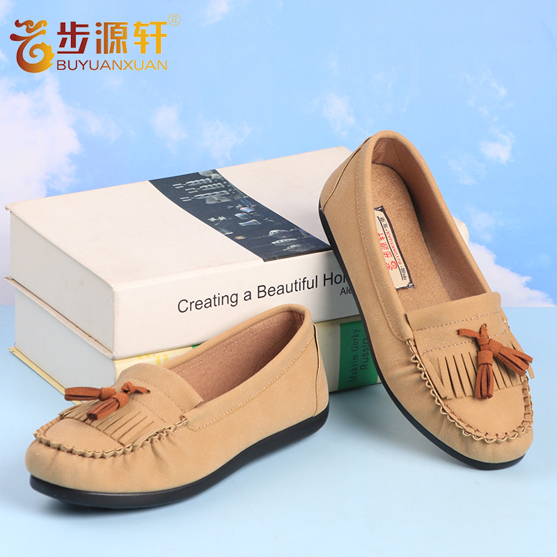 淘女鞋老北京布鞋女单鞋低帮软底平跟豆豆鞋工装鞋软底套脚粉色春季