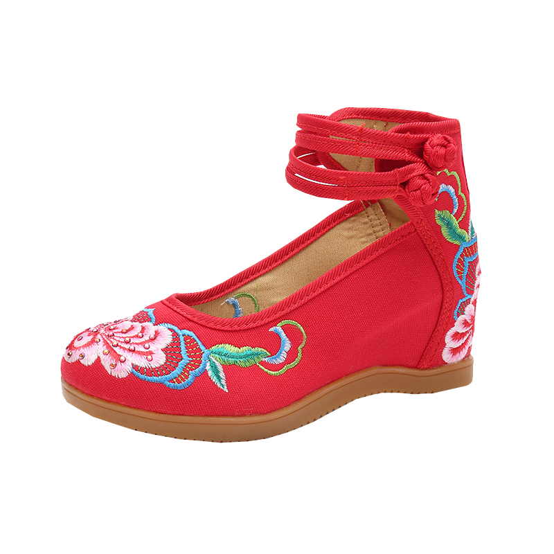 小红鞋女平底运动休闲鞋上班软底春秋百搭跑步妈妈鞋老北京布鞋女