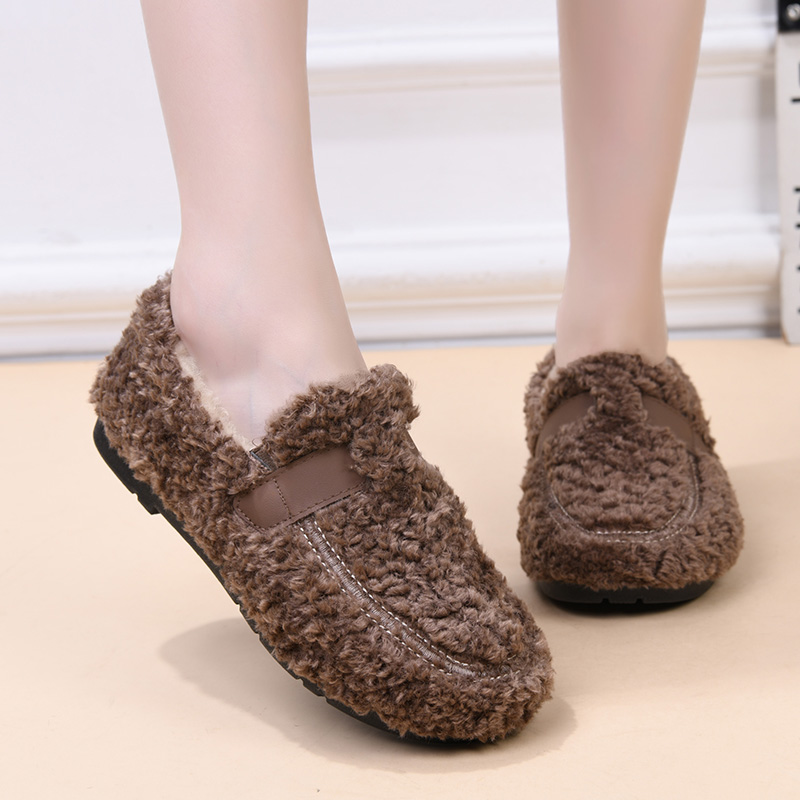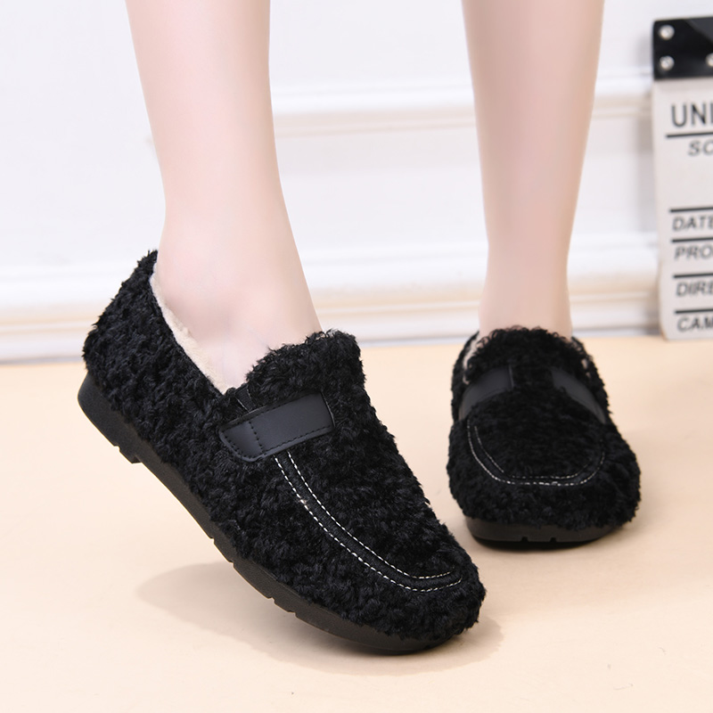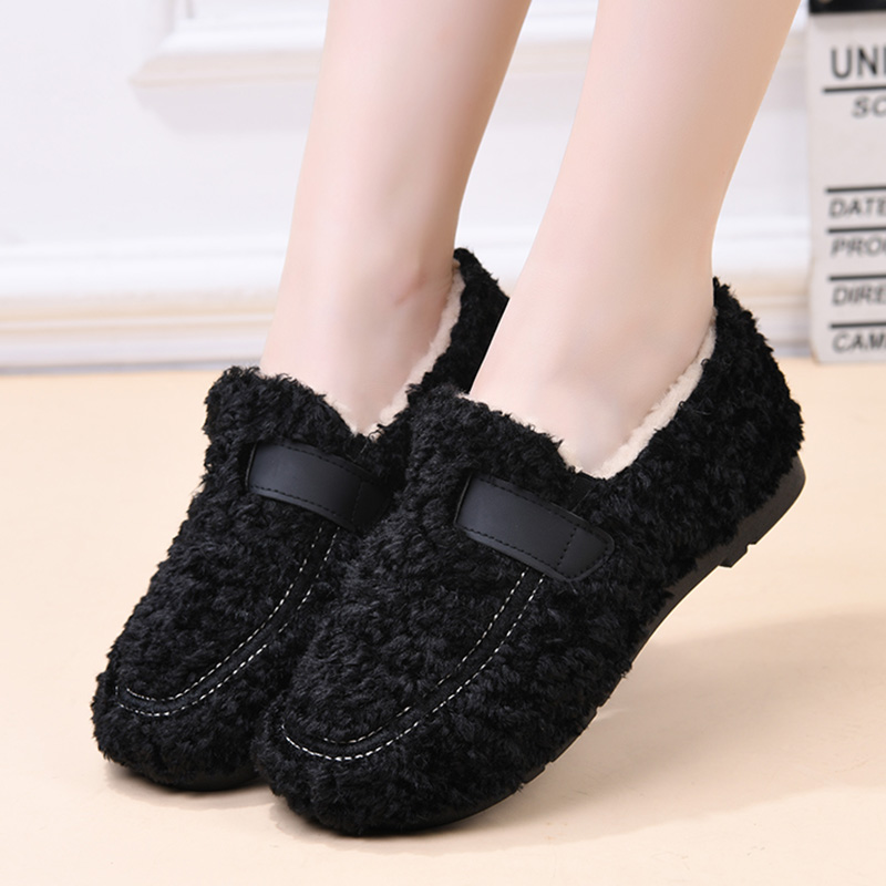 天老北京布鞋女秋冬加绒正品软底一脚蹬豆豆棉鞋时尚软面防滑毛毛鞋