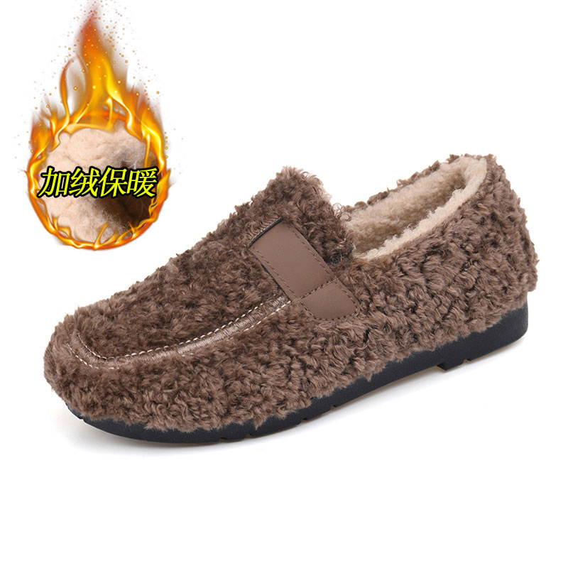 老北京布鞋女秋冬加绒正品软底一脚蹬豆豆棉鞋时尚软面防滑毛毛鞋