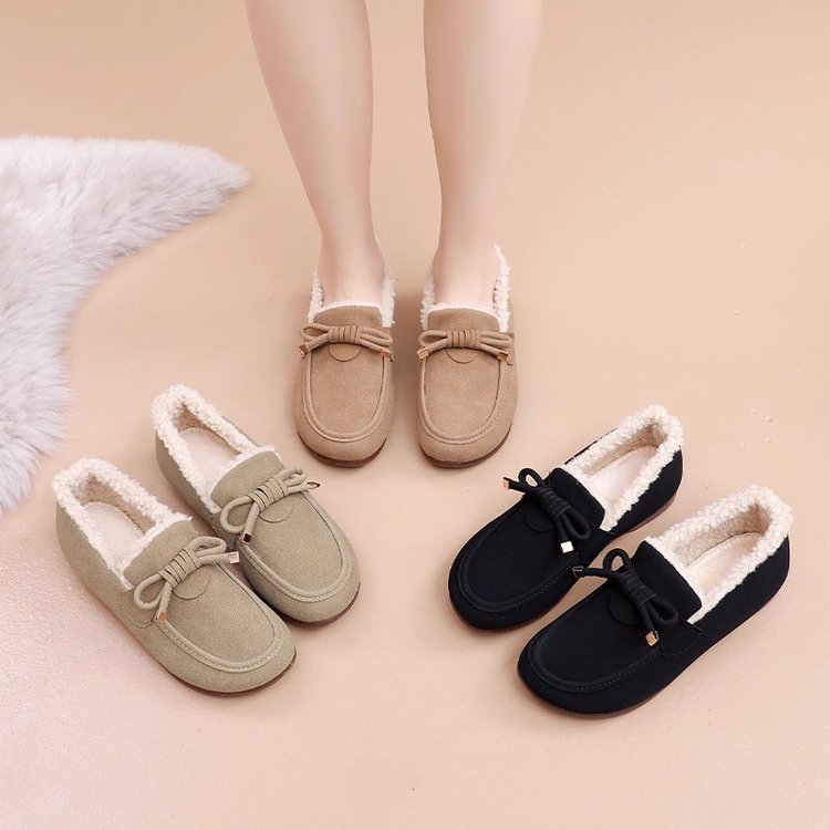 京睿2021新款毛毛鞋加绒老北京布鞋女棉鞋冬季外穿平底豆豆鞋保暖