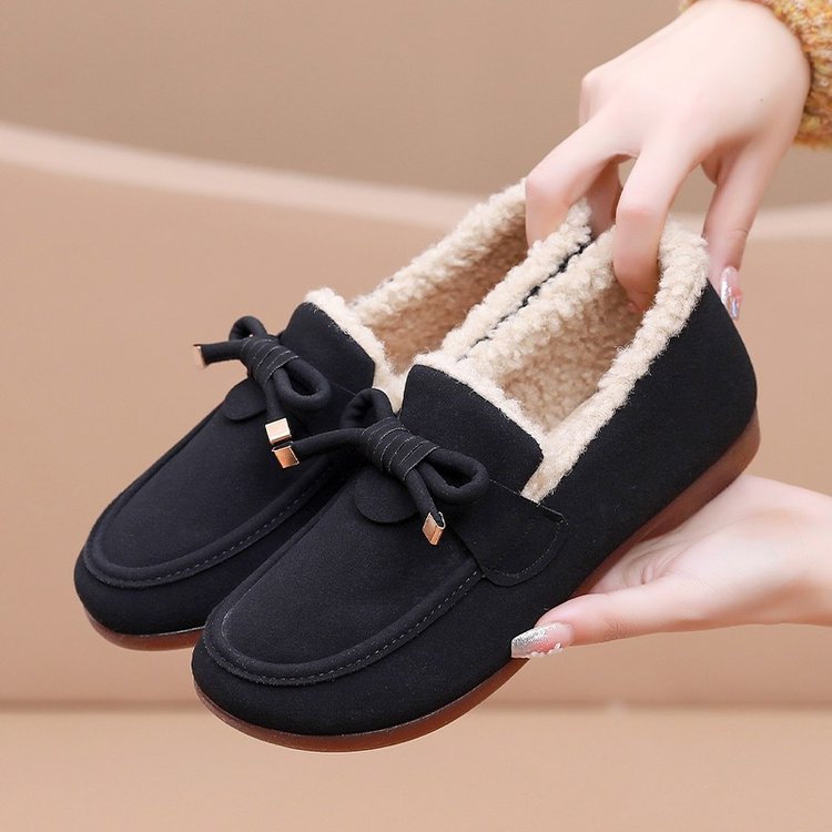 天老北京布鞋女冬季加绒保暖软底中老年豆豆棉鞋休闲女式懒人毛毛鞋