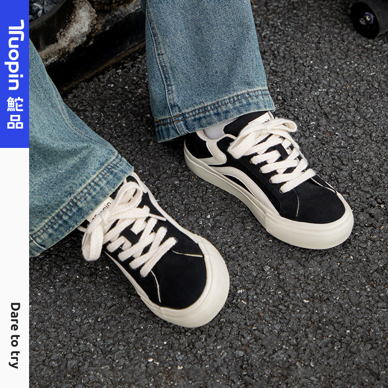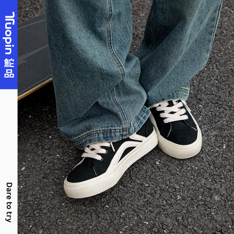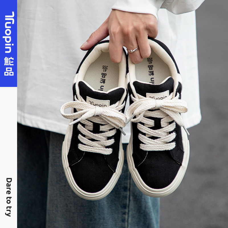 天猫鮀品黑色板鞋男女2025夏季新款厚底小黑鞋百搭帆布鞋子休闲运动鞋