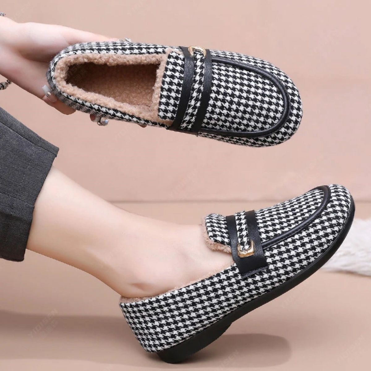 淘加绒保暖复古平底毛毛鞋女外穿休闲鞋2025秋冬款软底舒适豆豆棉鞋