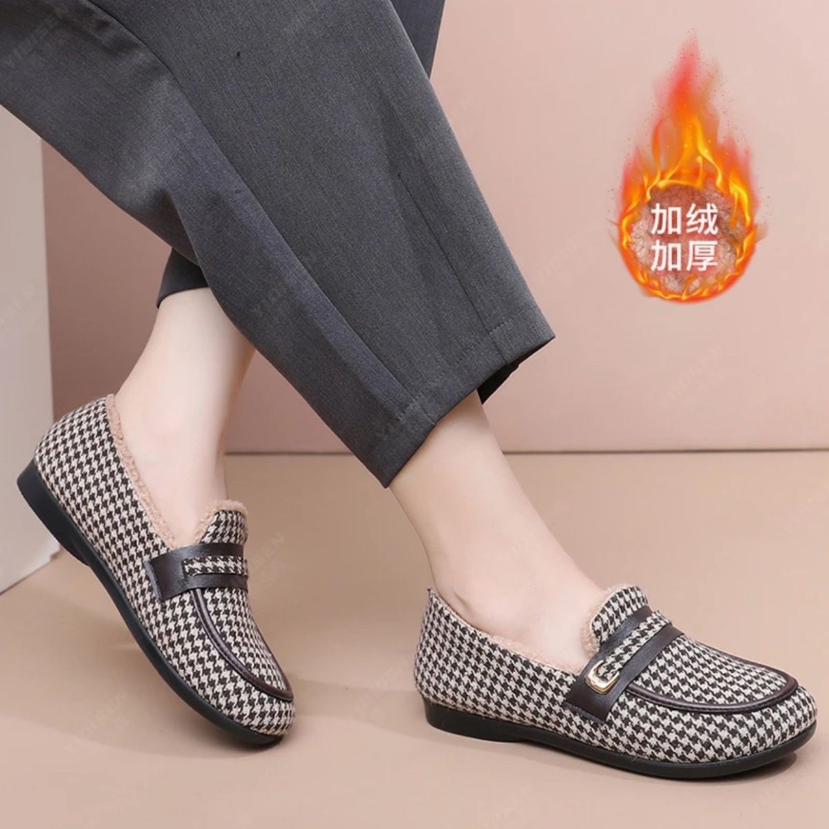 这款冬季加绒豆豆鞋是专为女性设计的时尚休闲鞋款。它采用平底设计,舒适耐穿,适合不同场合穿着。鞋面采用老北京布鞋的经典风格,兼具时尚与优雅。内里采用柔软绒毛,保暖效果极佳,防滑底部设计安全可靠,为冬季出行提供无忧体验。这款鞋子适合各种风格的穿搭,是您休闲和工作的理想选择。它是孝敬妈妈的最佳礼物,也是自用时尚鞋款的理想选择。这款鞋子既时尚又实用,是您冬季必备鞋款之一。
