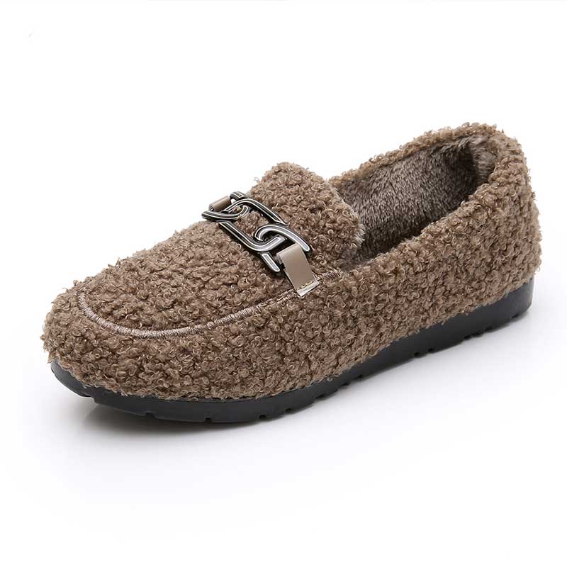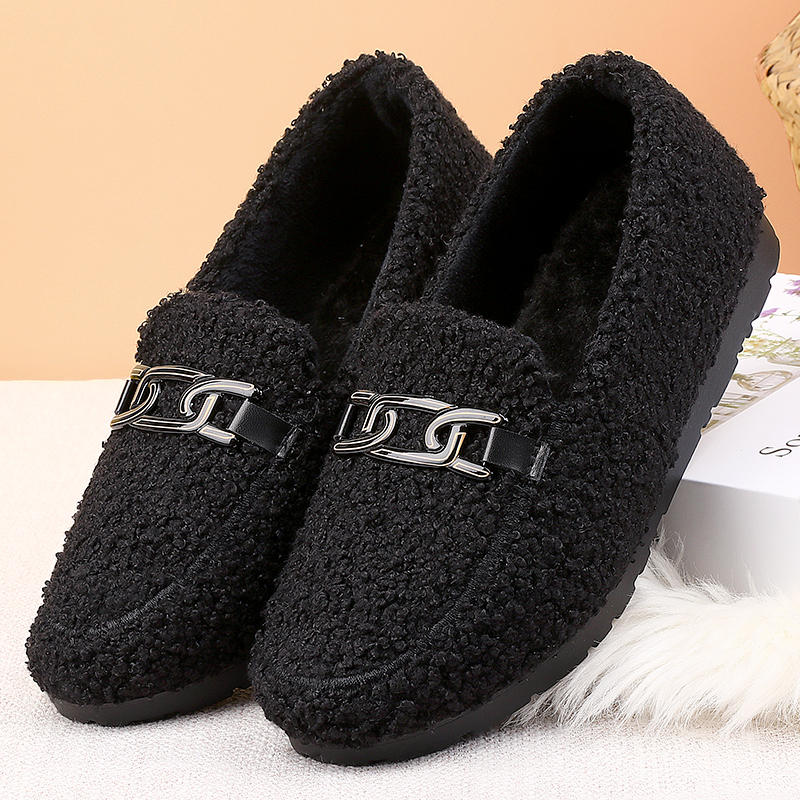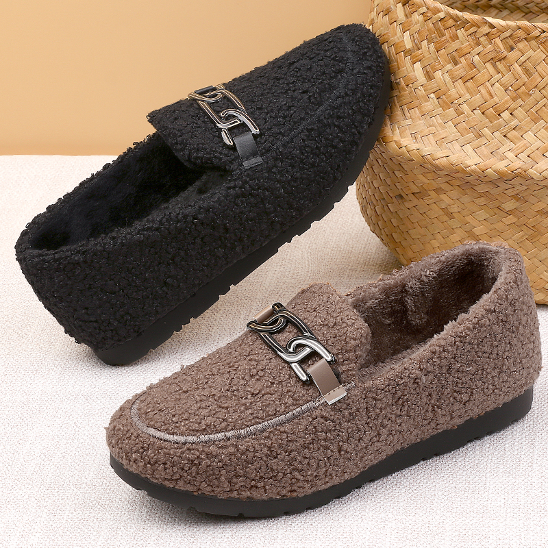 2025秋冬新款老北京布鞋韩版女鞋豆豆鞋加绒保暖真毛毛鞋平底棉鞋
