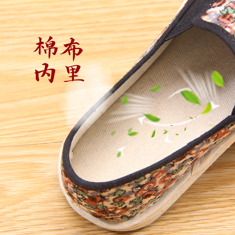内联升布鞋女老北京平底千层底手工小元口休闲女单鞋一脚蹬8603A