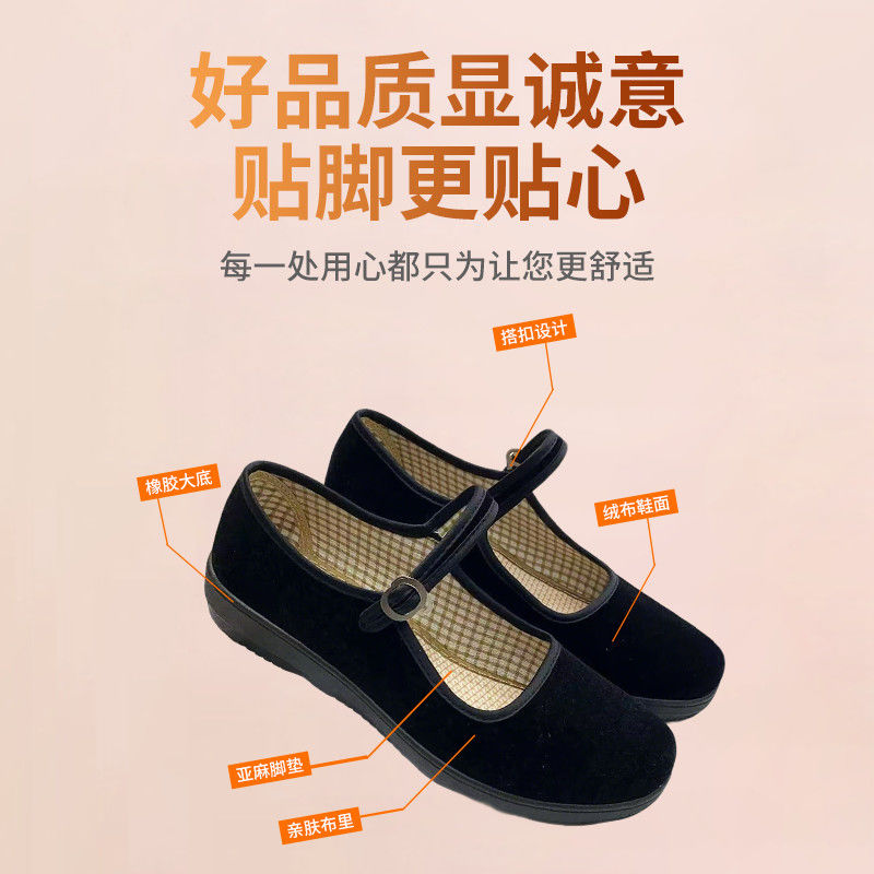 老北京布鞋女鞋平跟单鞋酒店礼仪工作装鞋软底妈妈鞋舞蹈鞋黑布鞋
