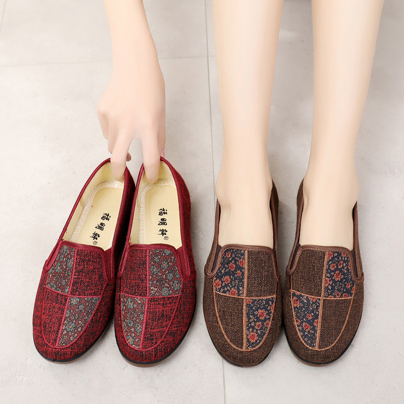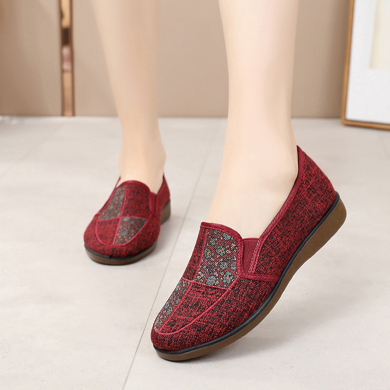 老北京布鞋女鞋牛筋软底妈妈鞋春秋单鞋透气防滑一脚蹬刺绣老人鞋