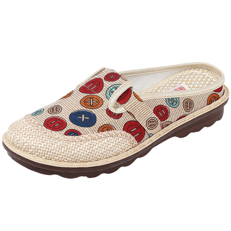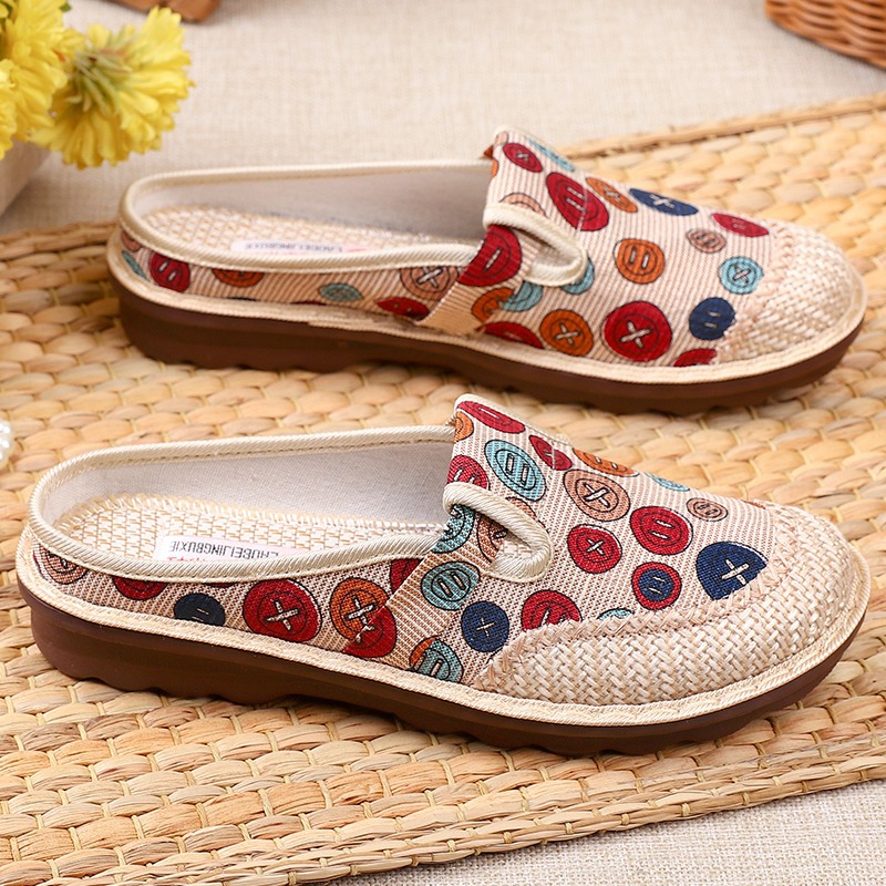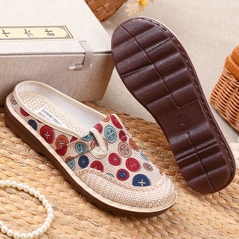 天猫老北京布鞋女绣花半拖鞋包头鞋妈妈鞋外穿复古一脚蹬懒人鞋女单鞋