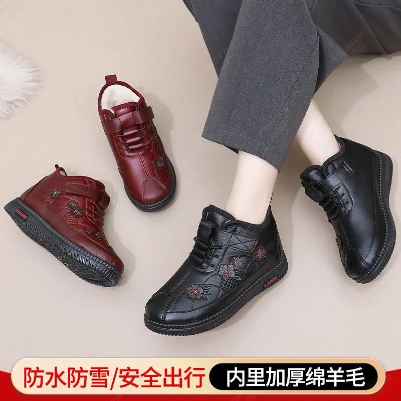 淘宝意迪森绵羊毛中老年老北京布鞋加绒保暖妈妈款冬季防水防滑女棉鞋