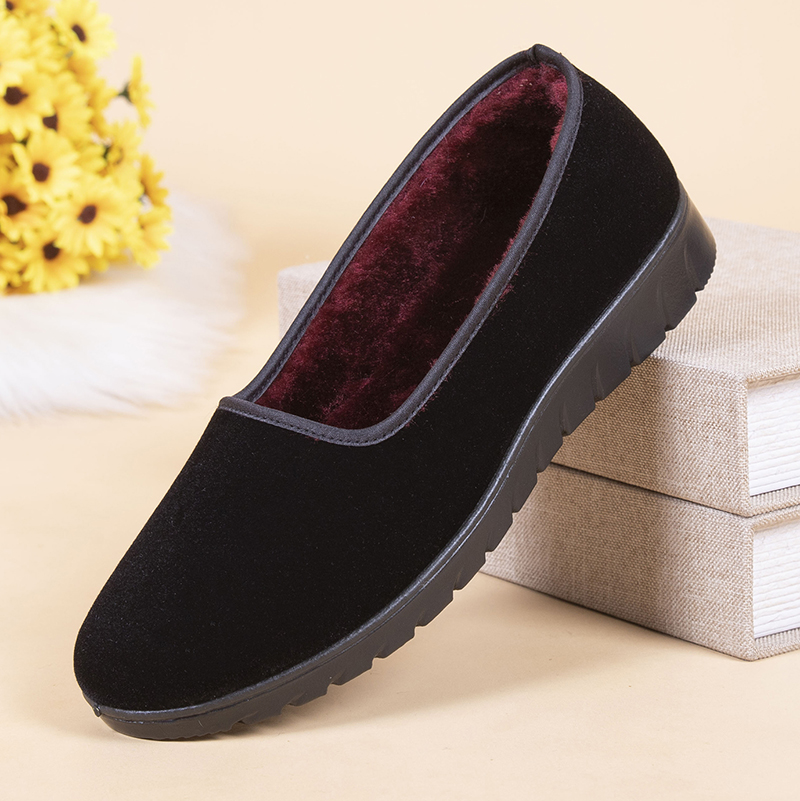 这款加绒冬季老北京布鞋,是专为女性设计的一脚蹬套脚工作棉鞋。鞋面采用优质黑布材质,保暖性能卓越,内部加绒设计更是温暖舒适。鞋底采用防滑软底材质,不仅增加了穿着的舒适度,还提升了稳定性,适合酒店等场所穿着。这款布鞋款式经典,时尚百搭,无论是工作还是日常搭配,都能轻松驾驭。一脚蹬的设计,穿脱方便,套脚舒适,是冬季保暖鞋子的理想选择。