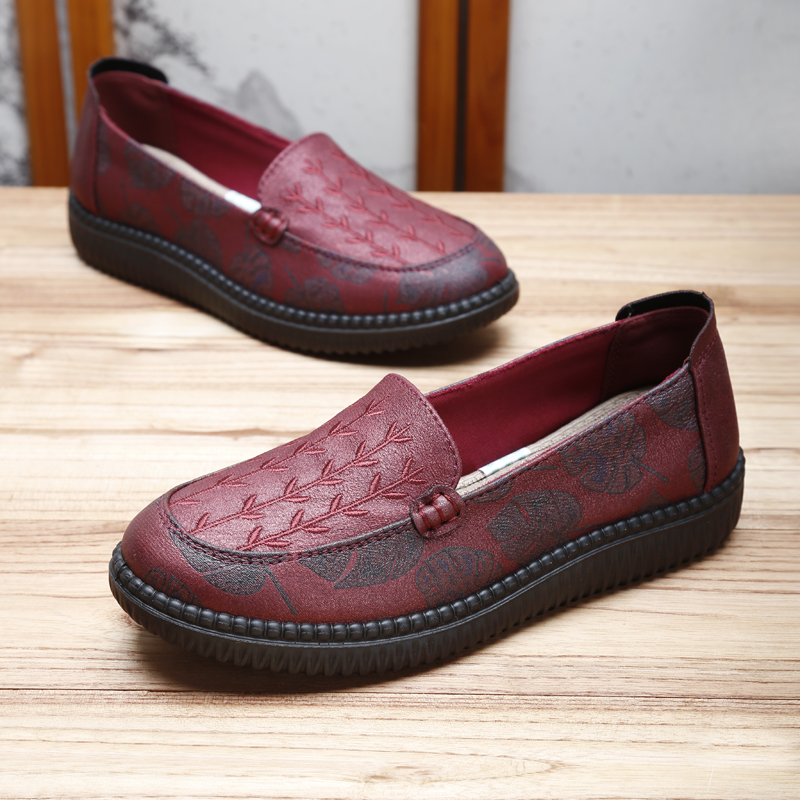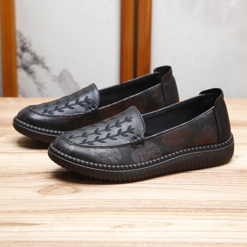 天内联升女鞋春夏秋女士皮面单鞋时尚休闲老北京布鞋4674C