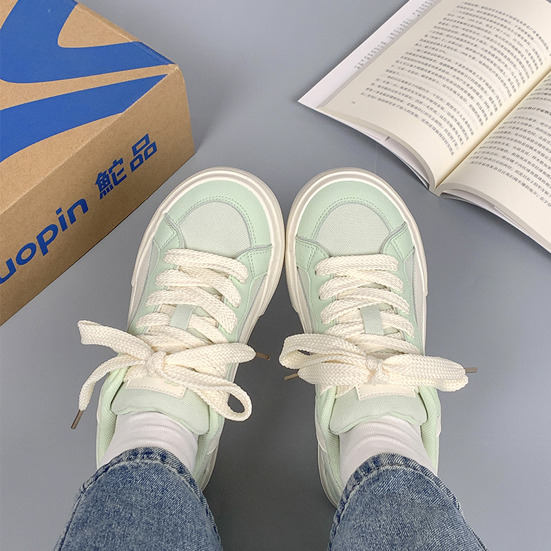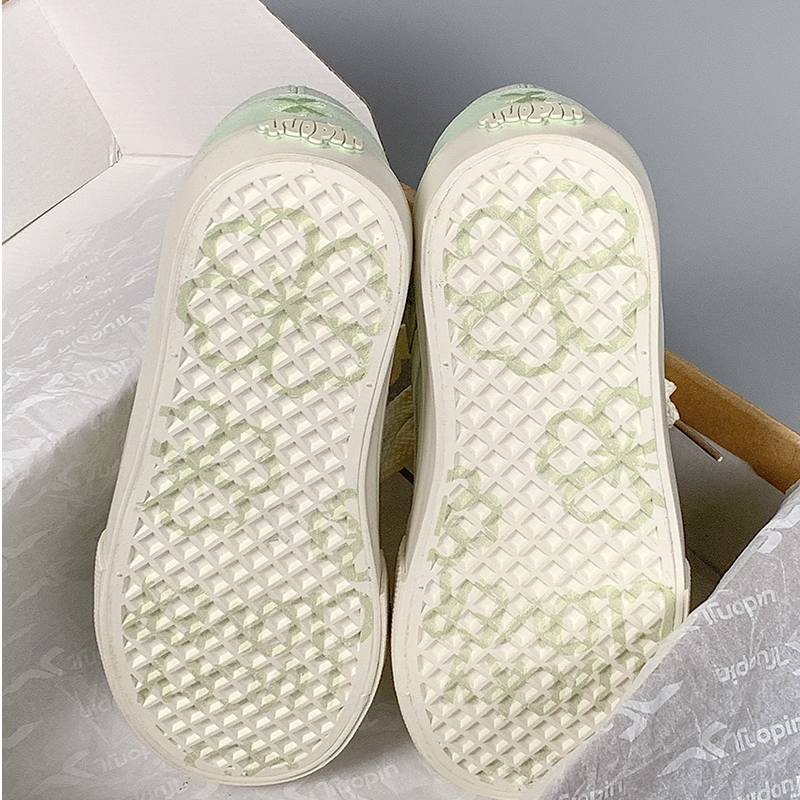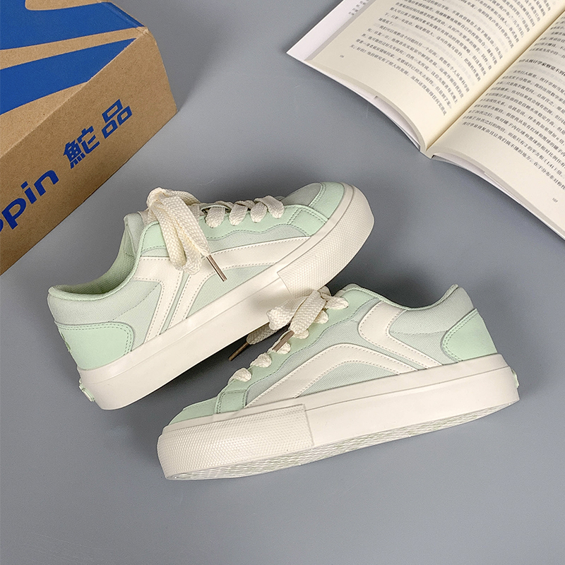淘宝鮀品四叶草板鞋女2025秋冬新款绿色百搭帆布鞋子厚底休闲运动鞋