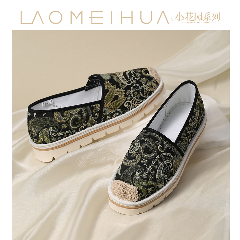 天猫腰果花刺绣老美华早春新款老北京布鞋女休闲鞋千层底汉服鞋女鞋