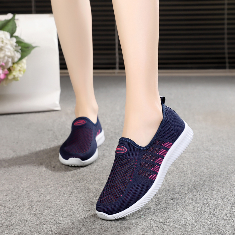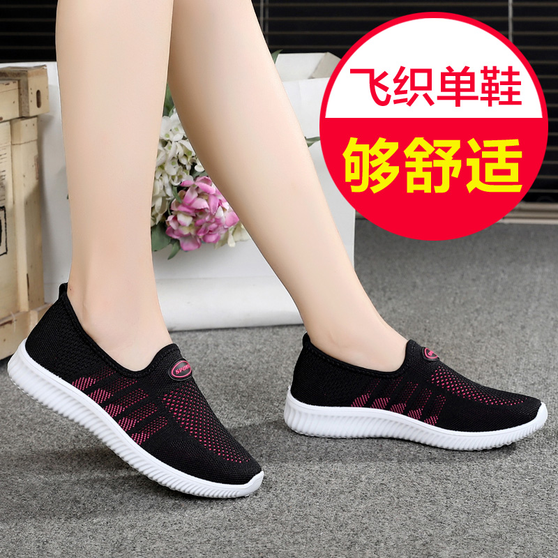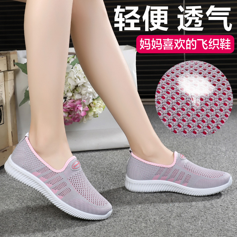 淘春季网面妈妈鞋透气平底休闲鞋防滑女单鞋一脚蹬懒人鞋老北京布鞋