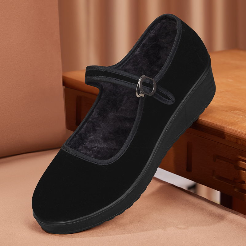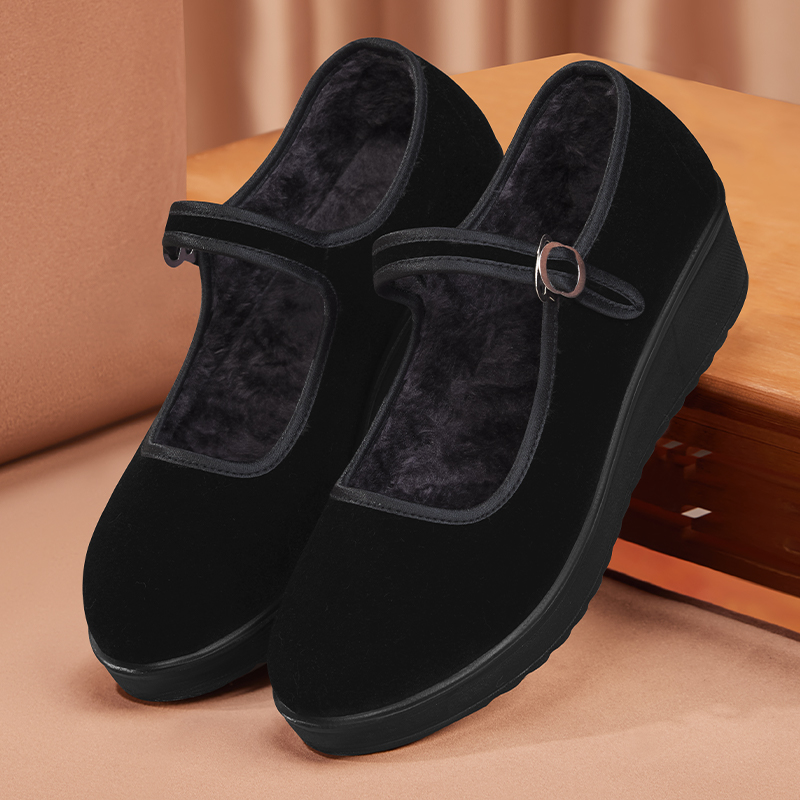 天猫老北京布鞋女冬季加绒酒店保暖鞋黑色防滑工作鞋软底秋冬加厚棉鞋