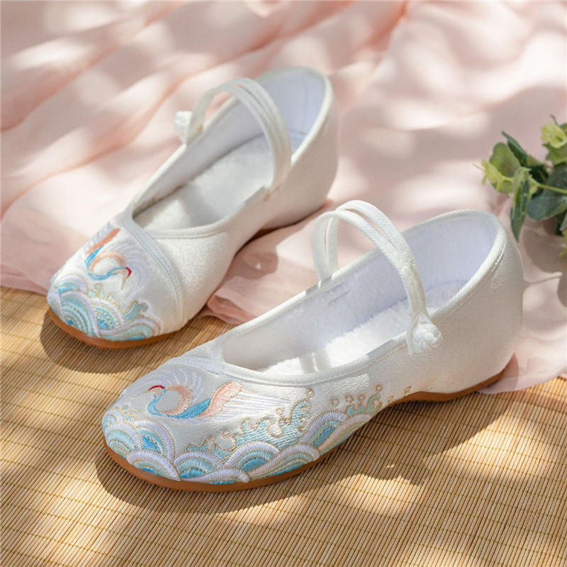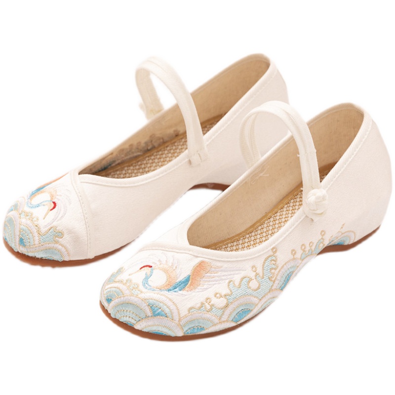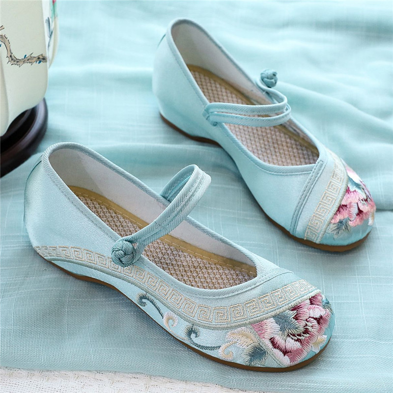 淘宝春秋款老北京布鞋古风丝光缎面中国风绣花低跟内增高女单鞋舞蹈鞋