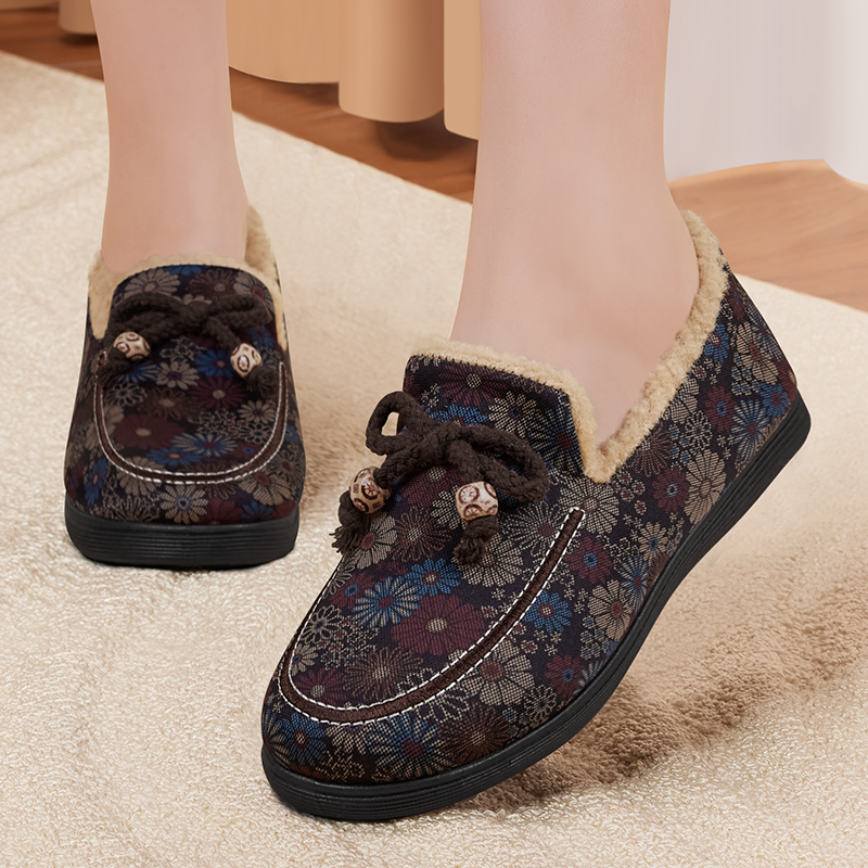 老北京布鞋女冬款加绒保暖鞋,专为中老年女性设计。这款鞋采用优质布料和加绒内里,保暖性能极佳,让您的双脚在寒冷的冬季也能感受到温暖舒适。防滑软底设计,有效防止跌倒,保障您的安全。这款鞋适合奶奶、妈妈等中老年人穿着,是冬日户外活动的理想选择。鞋面精美细致,颜色搭配得体,展现出老北京布鞋的传统韵味。舒适的贴合感,让您行走自如。是一款性价比极高的中老年女性冬季保暖鞋。
