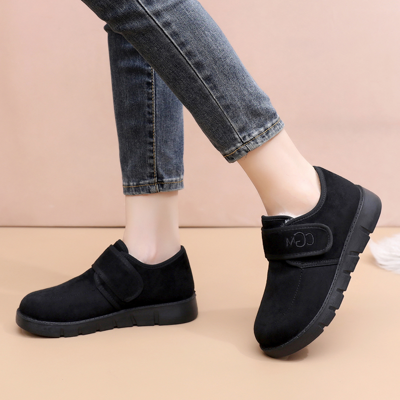 天猫冬季加绒保暖棉鞋休闲鞋女软底一脚蹬妈妈鞋黑色工作鞋老北京布鞋