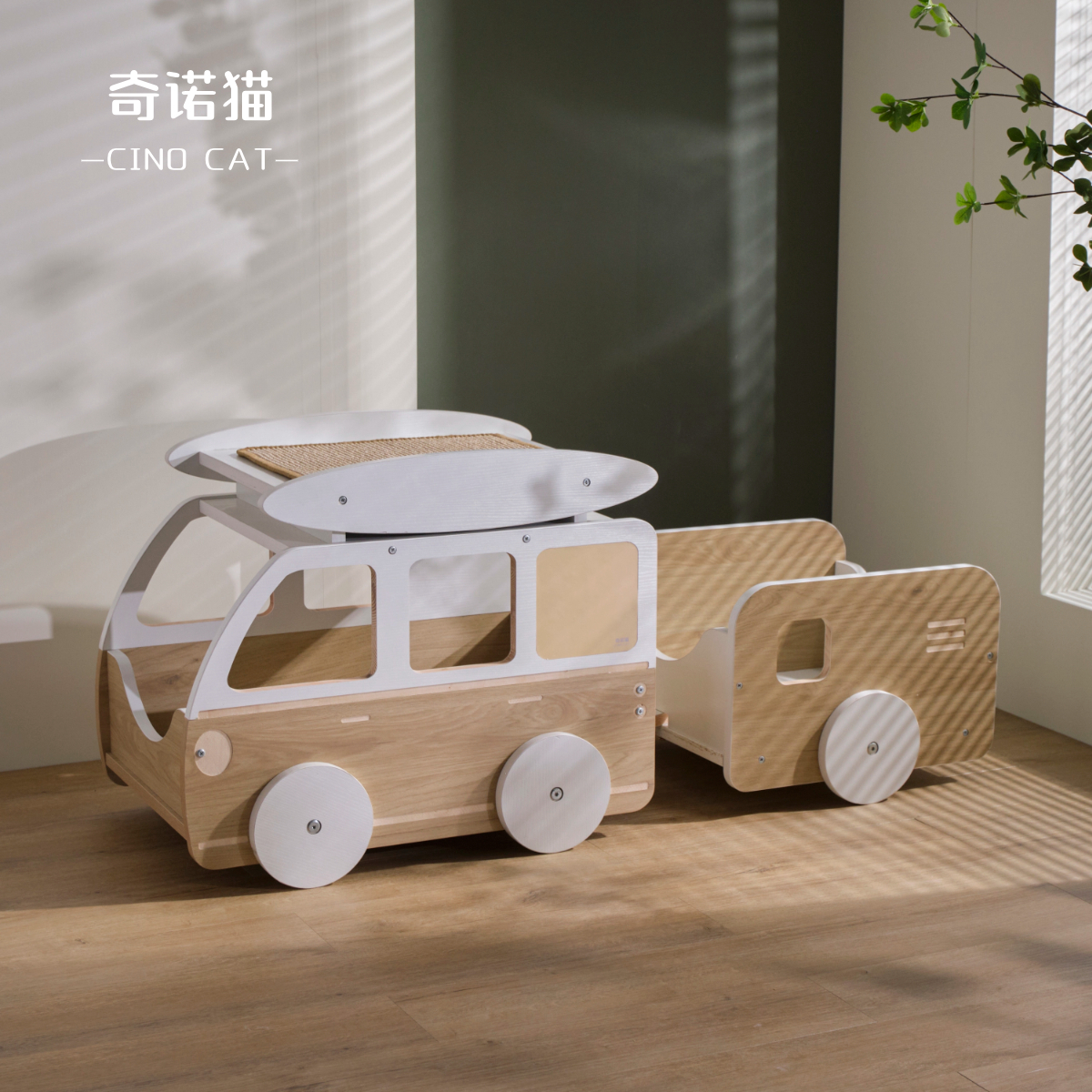 淘宝cinocat奇诺猫咪实木猫车猫狗窝防水猫抓板猫玩具一体保暖小红书