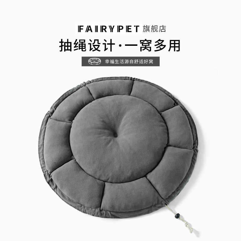 淘啵拉宠物韩系窝垫灰条纹方形窝深睡眠猫窝猫狗通用窝垫睡窝沙发窝