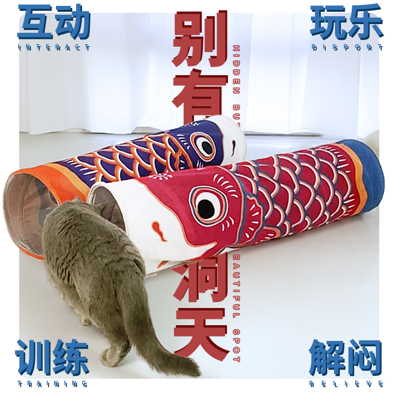 淘宝乌合集市鲤鱼旗猫狗隧道猫窝躲避猫钻洞逗猫棒猫玩具折叠宠物隧道