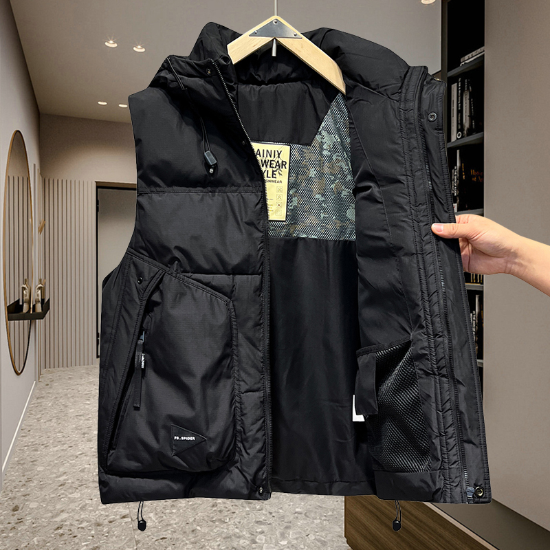 淘森马羽绒马甲男三防外套宽松连帽2024冬新款叠穿纯色百搭无袖上衣