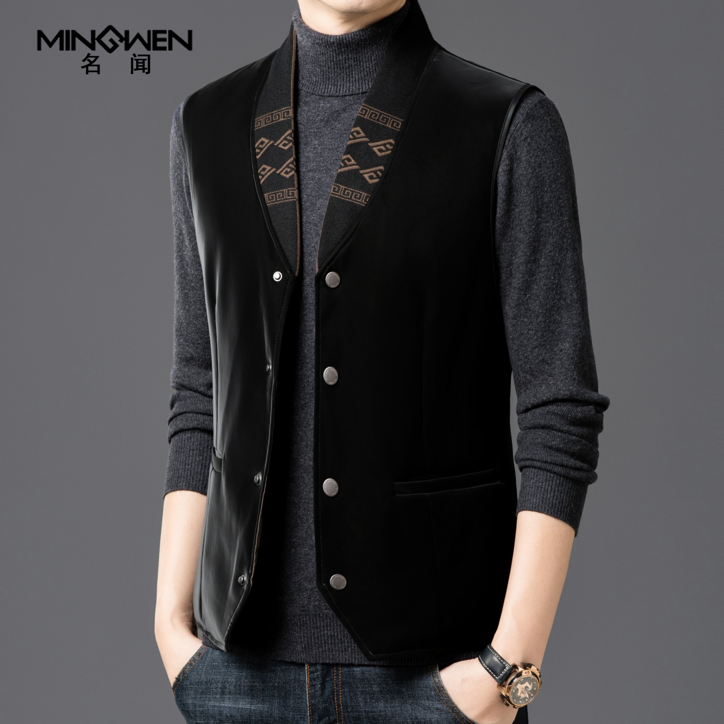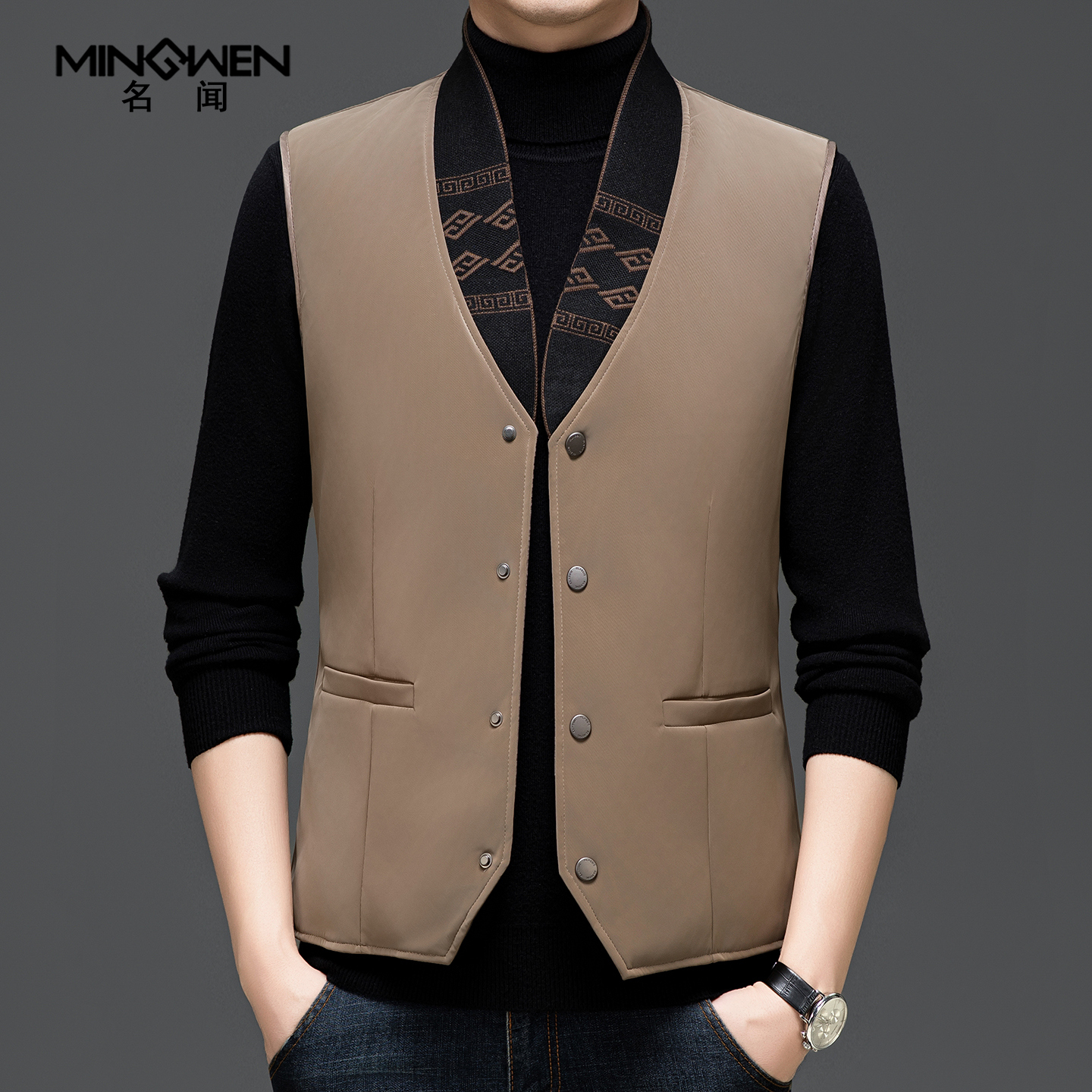 淘秋冬加棉立领拉链纯色休闲马甲男士高端商务雅痞时尚修身百搭坎肩