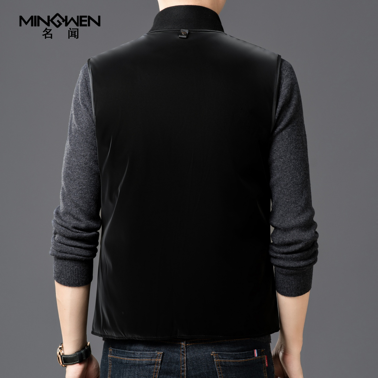 秋冬加棉立领拉链纯色休闲马甲男士高端商务雅痞时尚修身百搭坎肩