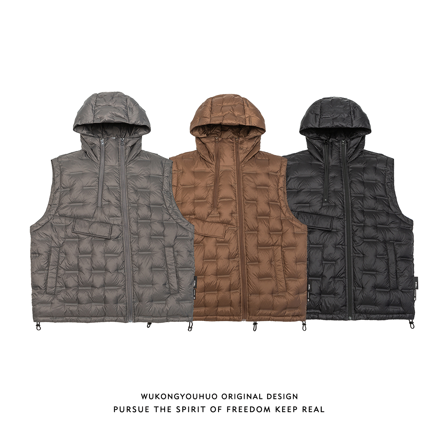 2025冬季男女新款机能风立领大口袋羽绒服90%白鸭绒保暖马甲复古
