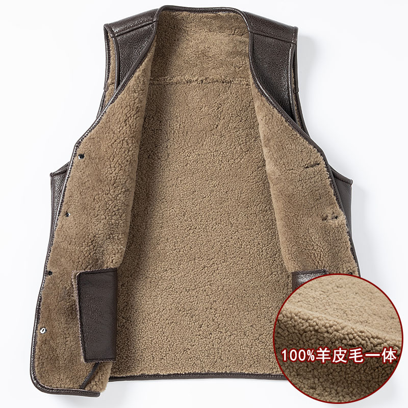 天猫真皮羊毛马甲男冬季加厚中老年爸爸爷爷背心坎肩皮毛一体保暖马夹