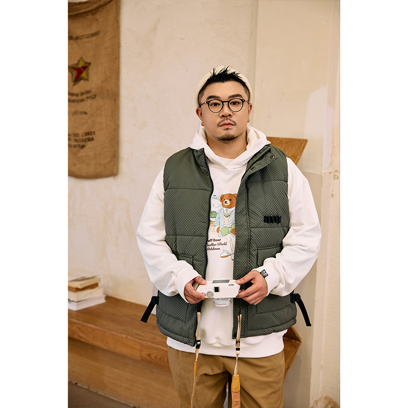 MANCHER【几何暖意】方格绗缝90白鸭绒羽绒马甲男加厚立领外套潮