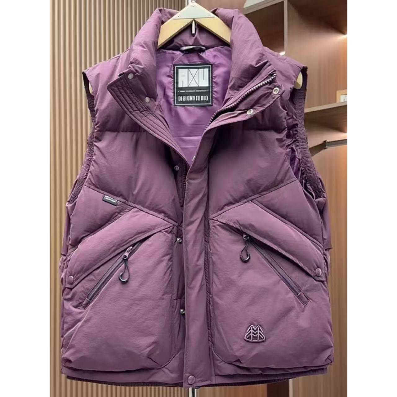 2025男士简约立领羽绒马甲宽松休闲轻型加厚外穿90白鸭绒背心冬季