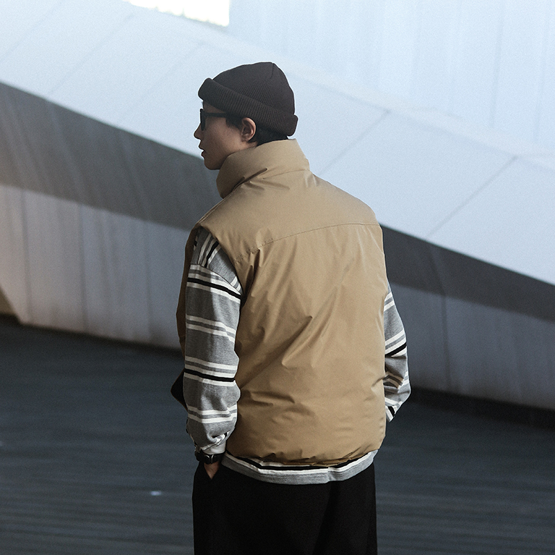 天POLOWALK男士日系羽绒马甲秋冬立领背心纯色简约保暖百搭外套