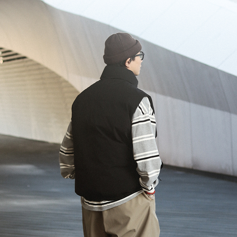 POLOWALK男士日系羽绒马甲秋冬立领背心纯色简约保暖百搭外套