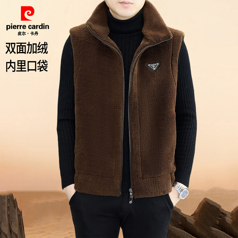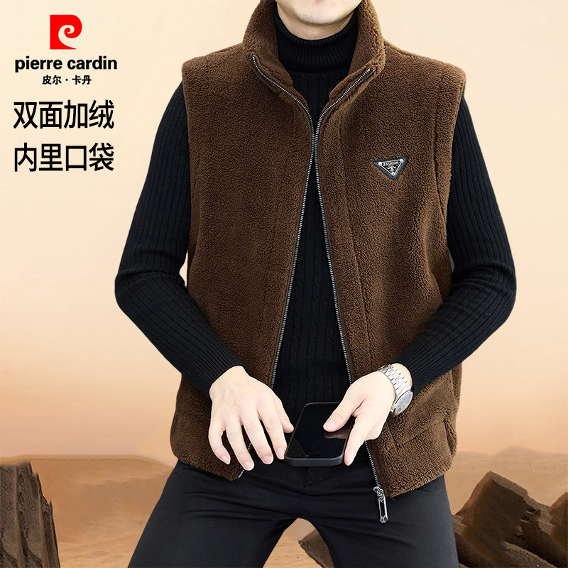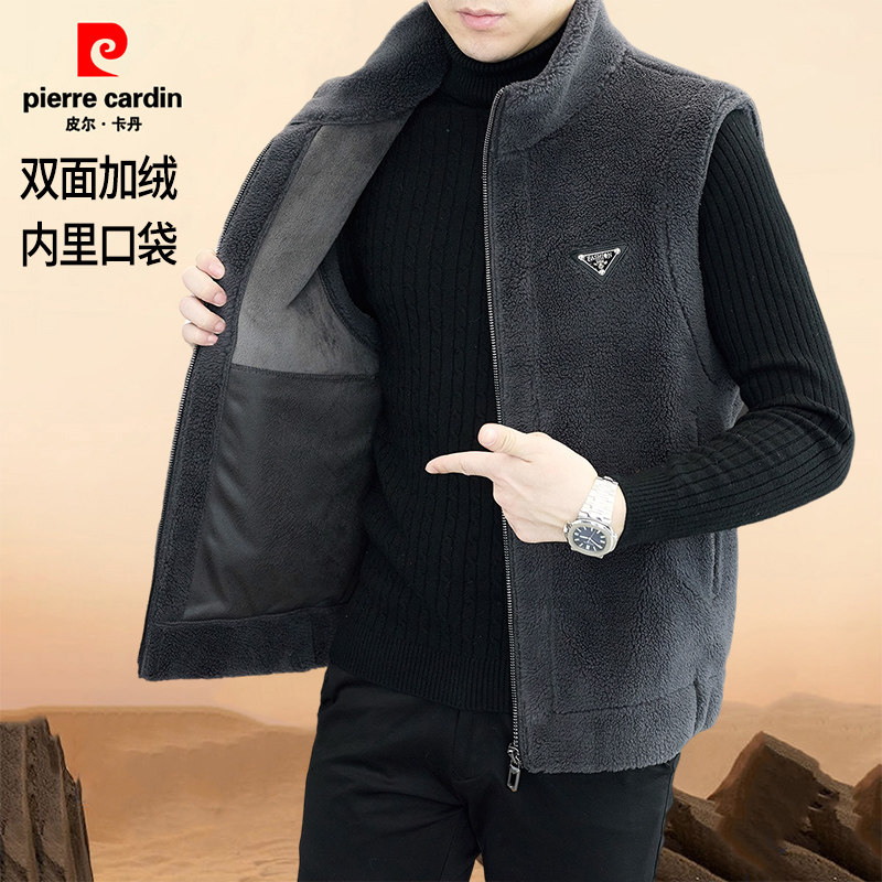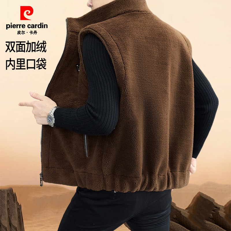 淘宝皮尔卡丹双面绒一体马甲男秋冬新款加绒保暖立领坎肩毛呢无袖外套