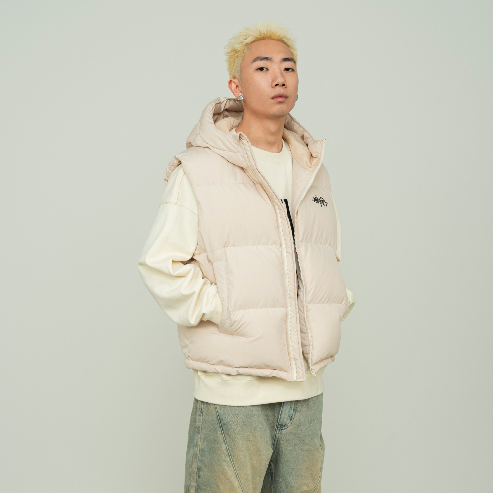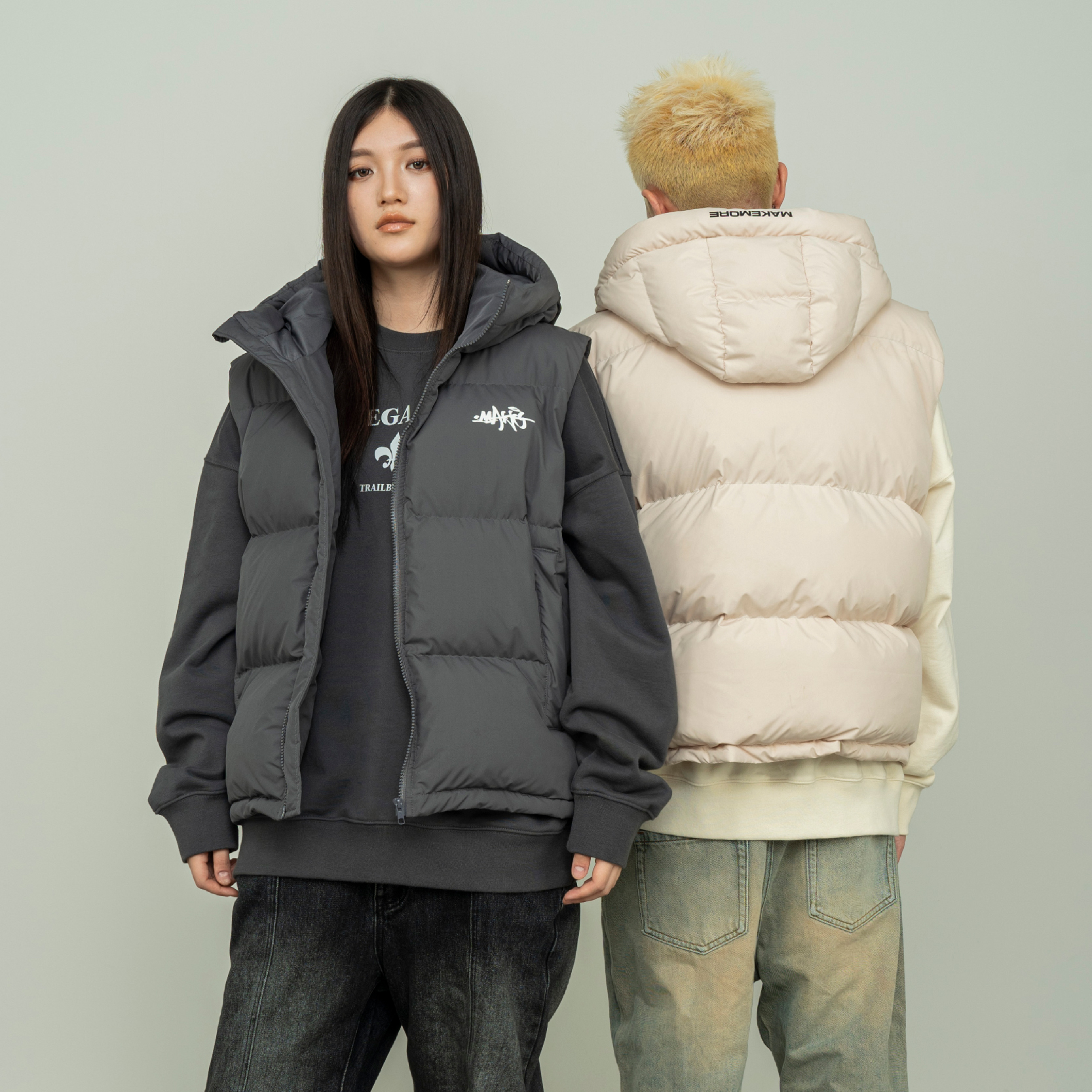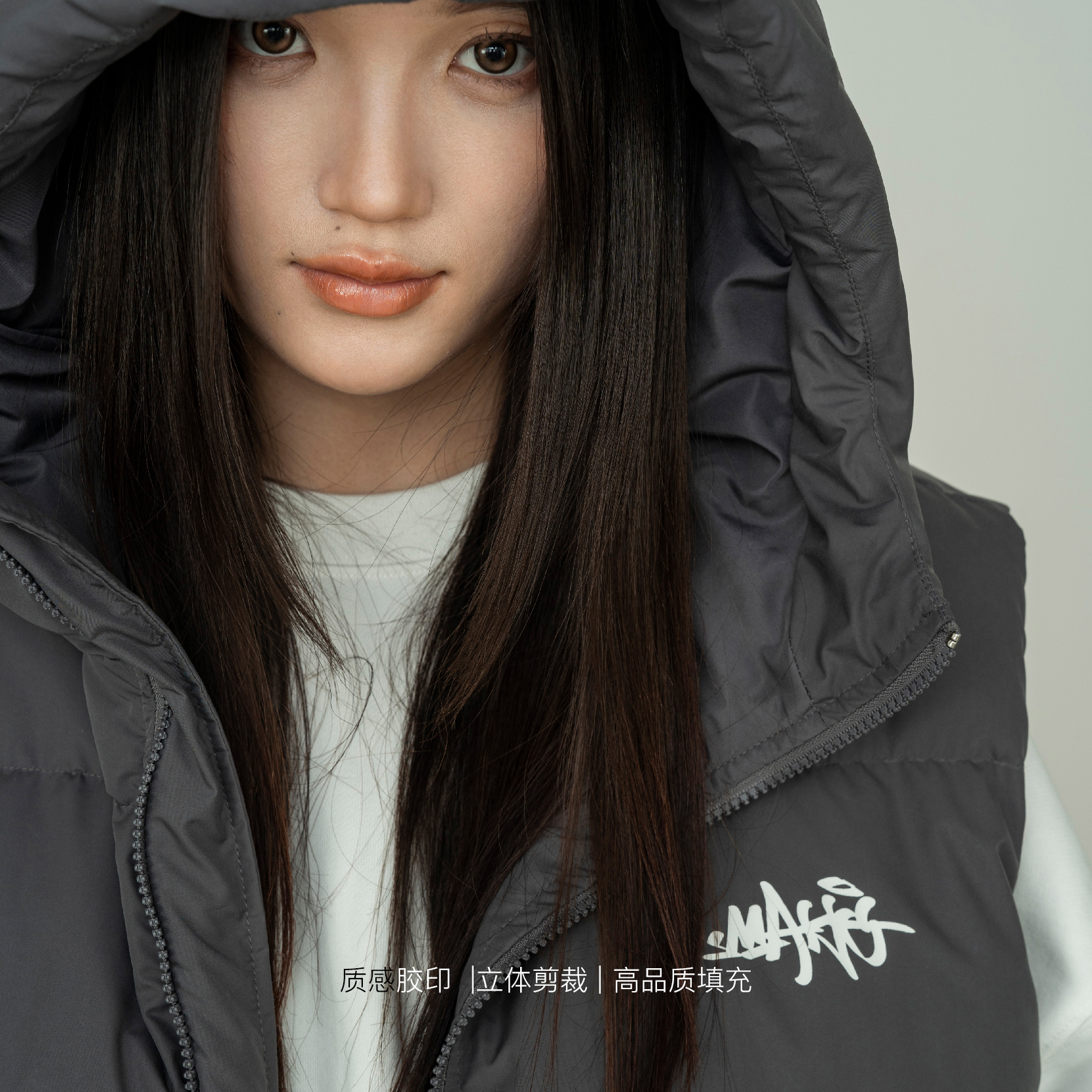 淘高定TB双拉链立领羽绒马甲后背织带男女无袖保暖背心外套休闲外搭
