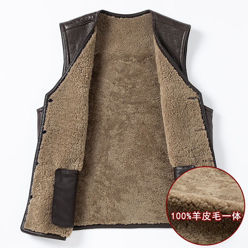 天猫真皮羊毛马甲男加厚中老年爸爸爷爷老人背心坎肩皮毛一体保暖马夹