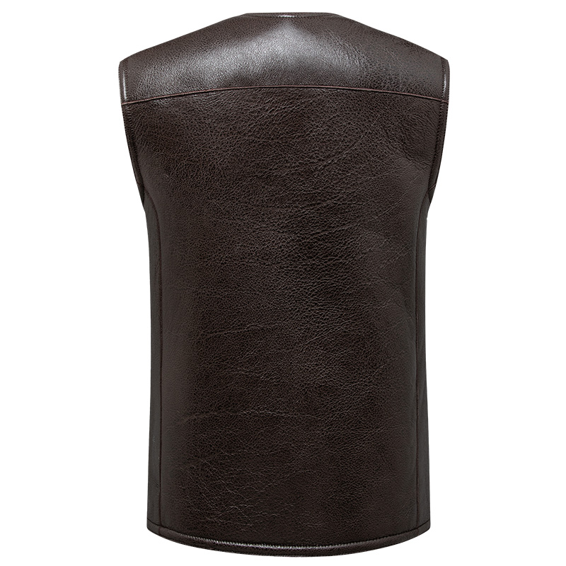 中老年皮马甲男真好皮多口袋秋冬季加绒加厚皮马夹爸爸装坎肩背心