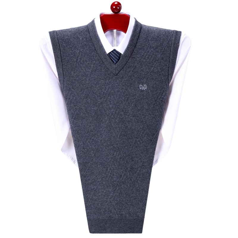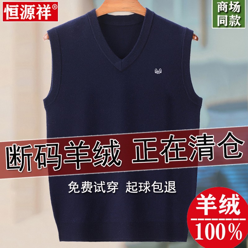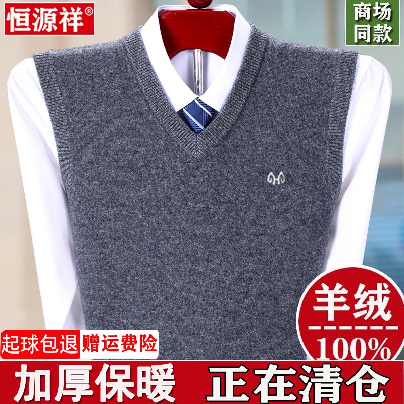 淘宝恒源祥羊绒背心男士秋冬加厚V领马甲中老年坎肩爸爸羊毛打底背心