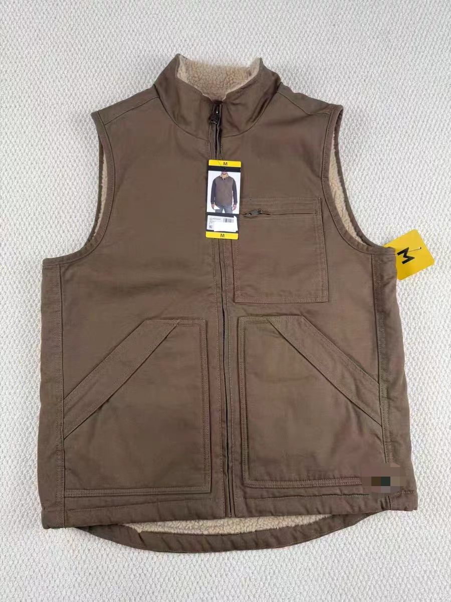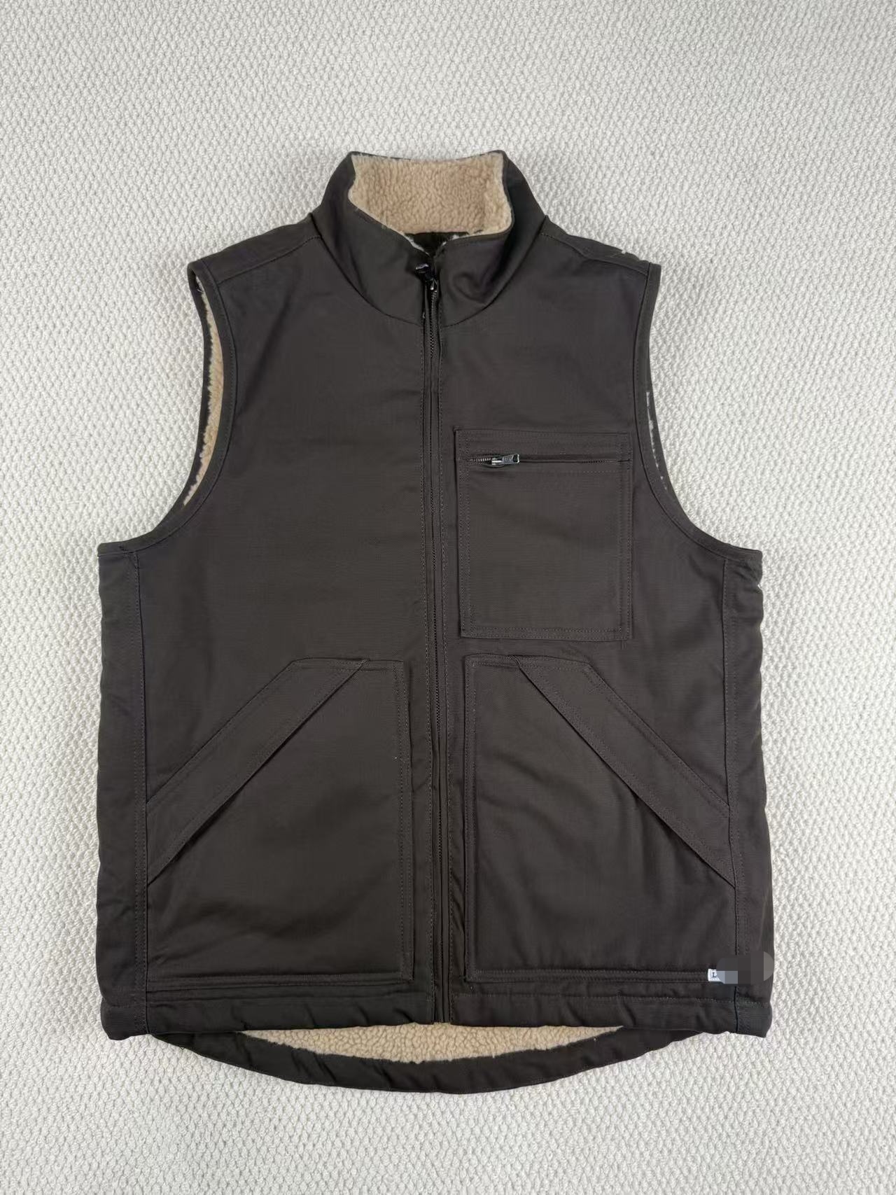 淘宝帆布耐磨!美式休闲外贸男士大码多兜工装马甲羊羔绒保暖马夹坎肩