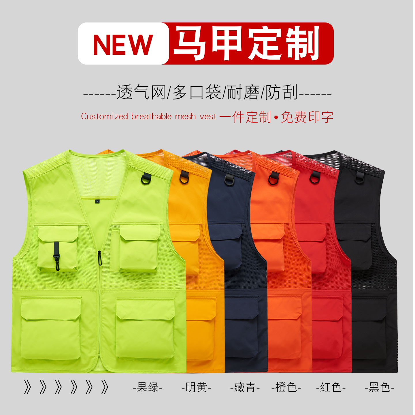 天猫外卖员工作服透气马甲多口袋储物马夹饿了么美团骑手渔网背心男女
